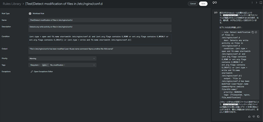 今回もSysdig Sageを使ってFalcoの理解を深める記事でした。Falcoルールの作成をアシストしてくれるので心強いですね。