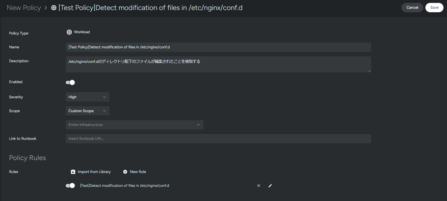 今回は、nginxディレクトリ(/etc/nginx/conf.d)配下のファイルの改ざんを検知するシナリオでFalcoルールを作成してみましょう。
